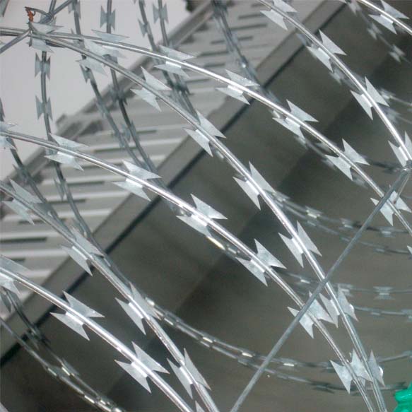 由雙線扣裝后成蛇腹?fàn)?,既美觀又讓人不寒而栗。起到了很好的阻嚇作用。高鐵刺絲滾籠具有美觀、防阻效果好、施工便利等優(yōu)點(diǎn)。
