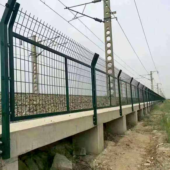 4、防腐、防老化、抗曬,隔離效果強,鐵路護欄網(wǎng)主要用于鐵路兩側的防護帶;機場、港口、碼頭的安全防護;市政建設中的公園、草坪、