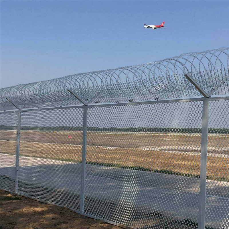 近年來,被廣泛應(yīng)用在機場,軍事基地等高安全場所。注:如果在機場隔離柵頂部加裝刀片刺絲、刀片刺繩后又很好的增強了安全防護性能。