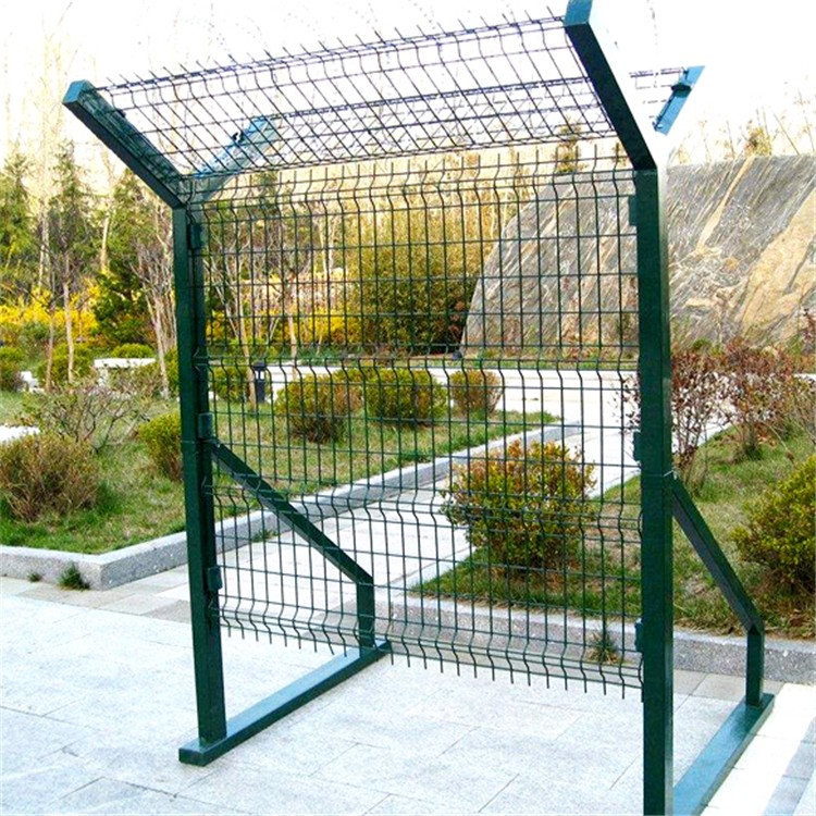 鋼筋網(wǎng)圍界因其由V型支架立柱、加強型焊接片網(wǎng)、安全防盜連接件和熱鍍鋅刀片刺籠組成可以有效防止行人攀爬跨越,可以提高安全防御,被應用在飛機場上。機場圍界采用寬為2.5米,高度為2.5米的帶V型加強筋網(wǎng)片及60*60mm(80*80mm)的立柱組成,其中網(wǎng)片網(wǎng)孔為50*75mm、50*100mm、50*150mm,絲徑為φ5mm高強度低碳鋼絲,立柱壁厚為2-4mm,立柱頂端加裝φ500mm或φ600mm刀刺滾籠。