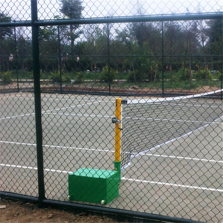 結(jié)構(gòu)簡捷牢固、整體美觀大方、球場圍網(wǎng)施工速度快,流水線生產(chǎn),圍網(wǎng)產(chǎn)品質(zhì)量有保障。該類型球場圍網(wǎng)的立柱和橫桿,均采用最先進(jìn)的熱浸涂塑技術(shù)做防腐處理,耐用時(shí)限最佳者達(dá)到10年以上。,圍網(wǎng)終身免維護(hù),場地門采用獨(dú)創(chuàng)的推拉結(jié)構(gòu),輕便靈活耐用。網(wǎng)面強(qiáng)力張緊,不易受外力沖擊變形,可根據(jù)用戶要求的尺寸直接訂做,節(jié)約時(shí)間,加快工程進(jìn)度,施工簡便,減少現(xiàn)場噪音污染。