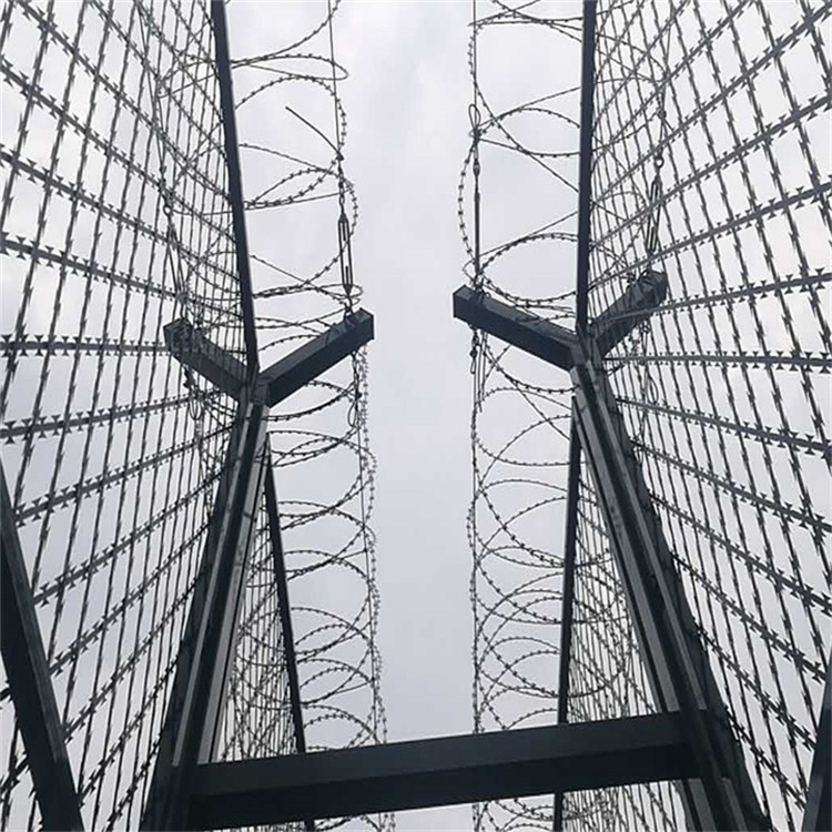 2.看守所防護網(wǎng)(監(jiān)獄鐵絲網(wǎng))蛇腹型刀刺網(wǎng)采用熱鍍鋅加噴塑(雙層防腐)塑層厚度0.2mm.