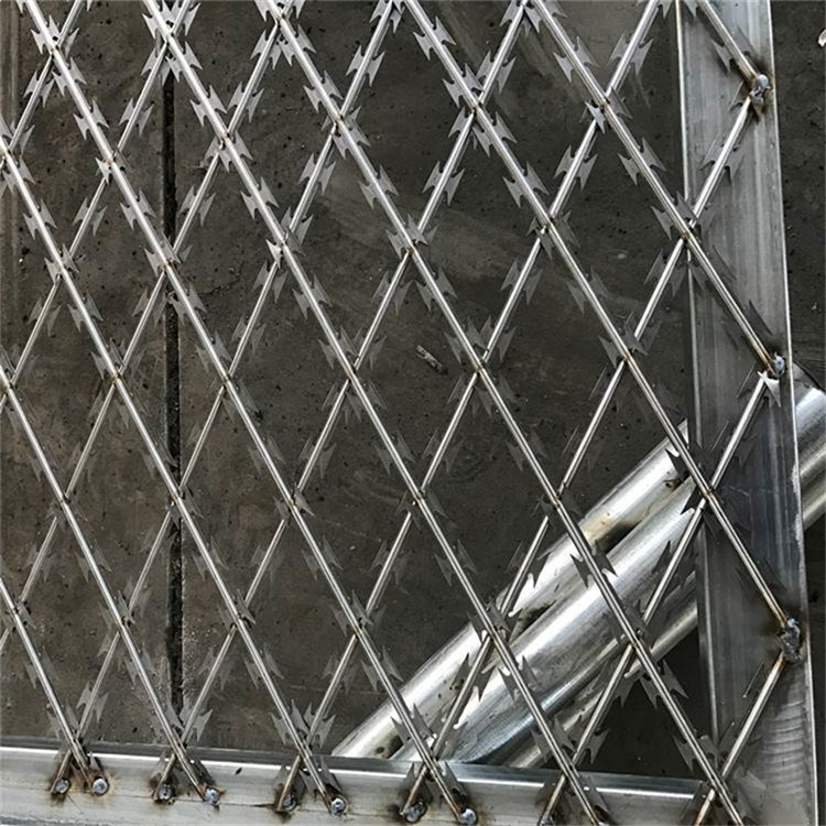 刀片隔離網(wǎng)主要用于園林公寓。刀片隔離網(wǎng)由銳利尖角鍍鋅鋼板或不銹鋼薄板做刀片,高張力鋼絲做芯線(xiàn)組合而成的阻絕器材。直線(xiàn)形刀片刺網(wǎng)由刀片型直線(xiàn)刺網(wǎng)交叉焊接成型。由于刀片刺繩防護(hù)網(wǎng)造形獨(dú)特不易觸摸,因而能達(dá)到極好的防護(hù)隔離效果。該產(chǎn)品具有嚇阻效果好,美觀(guān),施工便利,經(jīng)濟(jì)實(shí)用等優(yōu)異特點(diǎn)。