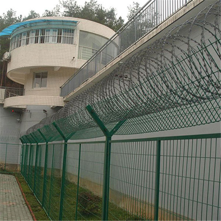 監(jiān)獄圍欄主要用途:監(jiān)獄、機場封閉 、私人地域、軍事重地、 場區(qū)圍網(wǎng)、 開發(fā)區(qū)隔離網(wǎng)使用.制作工藝:預(yù)直絲、裁剪、預(yù)彎、焊接、檢驗、置框、破壞性實驗、美化(PE、PVC、熱浸)、包裝、入庫、出廠。