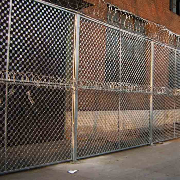 監(jiān)獄護(hù)欄網(wǎng)又稱作“y型柱隔離網(wǎng)”,是由v型支架立柱,加強(qiáng)型焊接片網(wǎng),安全防盜連接件和熱鍍鋅刀片刺籠組成強(qiáng)度和安全防御性級別很高?,F(xiàn)被廣泛應(yīng)用在監(jiān)獄,軍事基地等高安全場所。注:如果在監(jiān)獄護(hù)欄網(wǎng)頂部加裝刀片刺絲、刀片刺繩后又很好的增強(qiáng)了安全防護(hù)性能。采用電鍍、熱鍍、噴塑、浸塑等防腐形式,具有很好的抗老化、抗曬、耐候等特點(diǎn)。其產(chǎn)品造型美觀、花色多樣,既起到圍欄作用,又起到美化作用。由于具有安全性高、防攀爬能力好,網(wǎng)片連接方式采用sbs緊扣件,橫向四道折彎加強(qiáng)筋,使網(wǎng)面強(qiáng)度顯著增加。