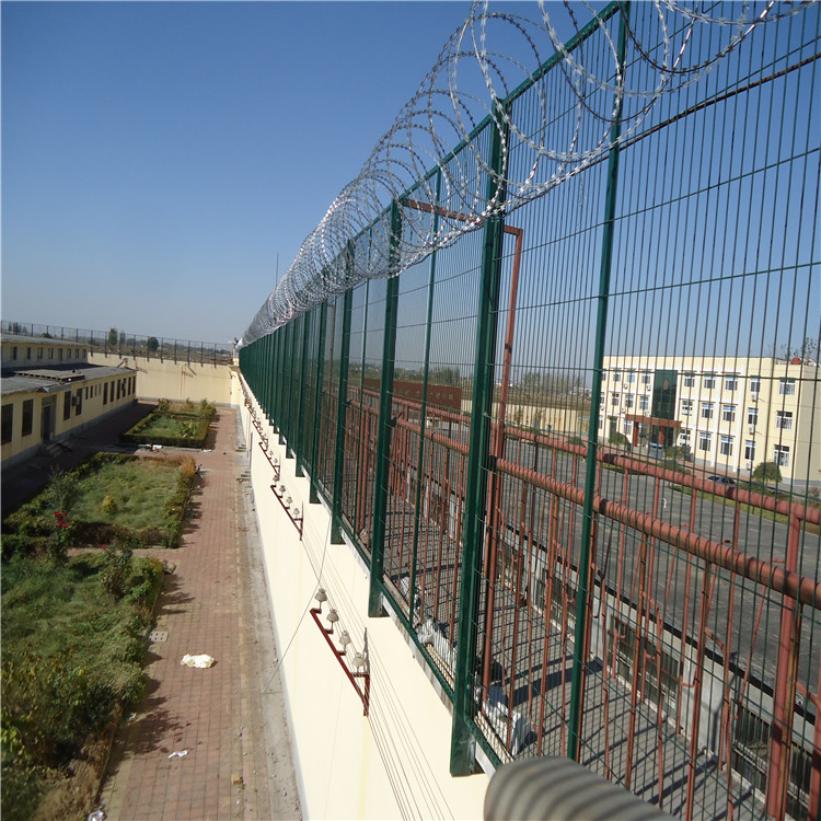 監(jiān)獄護欄網(wǎng)是一款為高機密高安全場所設計新型護欄網(wǎng)又稱監(jiān)獄防護網(wǎng)或監(jiān)獄隔離柵,它主要是采用先進高強度的刀片刺網(wǎng)與優(yōu)質護欄網(wǎng)的結合體,由V型支架立拄,加強型焊接片網(wǎng),安全防盜連接件和刀片刺網(wǎng)組成,既安全環(huán)保又經(jīng)久耐用。