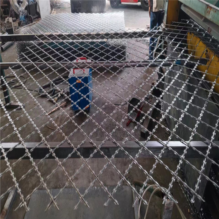 主要是由熱鍍鋅鋼板或不銹鋼薄板沖壓而成的,它擁有尖銳的刀片,高張力鍍鋅鋼絲或者不銹鋼絲做芯線組合而成的產(chǎn)品。由于刺網(wǎng)的形狀很特別,而且每個角度都有尖狀刀片,因而能達(dá)到極好的防御保護(hù)效果。產(chǎn)品具有結(jié)構(gòu)新穎、堅固緊密、網(wǎng)面平整、網(wǎng)孔均勻、刀鋒銳利、防攀爬、抗腐蝕性強(qiáng)等特點。建設(shè)于監(jiān)獄的內(nèi)外墻地面及高墻之上,網(wǎng)墻內(nèi)側(cè)或頂部加裝蛇腹形刀刺網(wǎng),形成一道高不可攀、難以逾越的隔離障礙。