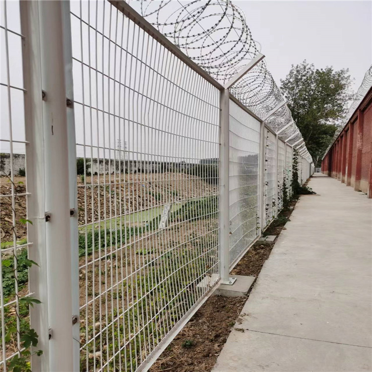 監(jiān)獄隔離網(wǎng)主要采用高強度的刀片刺網(wǎng)與普通防護網(wǎng)的結(jié)合,由Y型立柱、安全防盜連接件等組成。