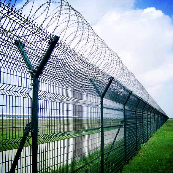 在機(jī)場(chǎng)護(hù)欄網(wǎng)頂部安裝刀片和螺釘將大大加強(qiáng)機(jī)場(chǎng)安全系統(tǒng)。另外,機(jī)場(chǎng)護(hù)欄網(wǎng)采用電鍍,熱浸,噴涂成型,浸涂等多種防腐形式,具有良好的耐老化,耐曬,耐腐蝕等特點(diǎn)。機(jī)場(chǎng)護(hù)欄網(wǎng)產(chǎn)品設(shè)計(jì)美觀,色彩豐富。發(fā)揮著保護(hù)機(jī)場(chǎng)的作用。由于機(jī)場(chǎng)護(hù)欄網(wǎng)具有安全性高,抗攀爬能力強(qiáng)的特點(diǎn),因此連接管理模型主要使用特殊的SBS緊固件。該緊固件非常牢固,可以有效防止人為損壞,采用橫向四向彎曲加固,顯著提高網(wǎng)絡(luò)表面強(qiáng)度水平,安全性能優(yōu)異。