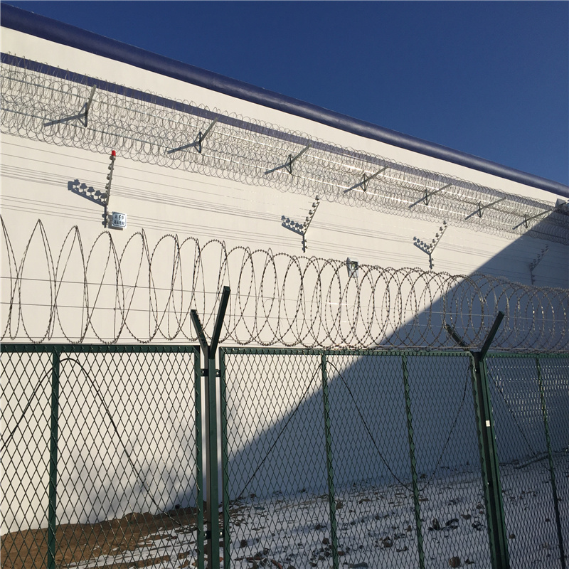 刀片刺網(wǎng)具有嚇阻、防翻越等效果,材質(zhì)堅(jiān)硬,高強(qiáng)度,高張力,造型設(shè)計(jì)獨(dú)特,不宜觸摸,因而能達(dá)到極好的防護(hù)隔離效果,監(jiān)獄護(hù)欄網(wǎng)采用低碳鋼