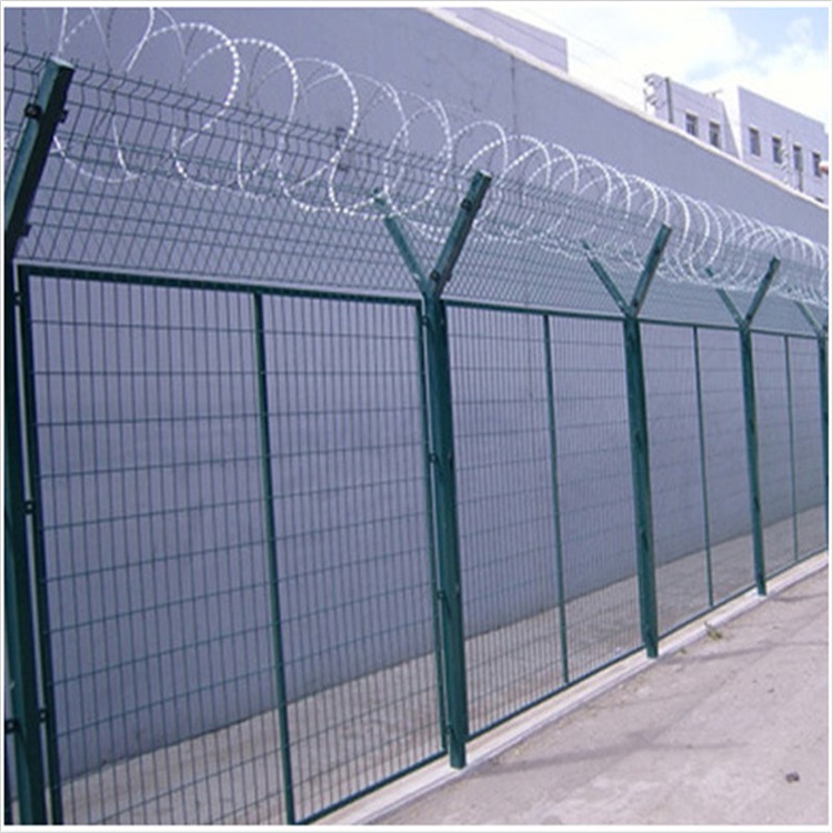 監(jiān)獄護欄網專門為監(jiān)獄等隔離性級細的廠所設計,外型嚴律,防護性理,監(jiān)獄防網又稱監(jiān)獄護欄網或監(jiān)獄隔離柵,主要是采用高強的刀片與普通防護的結合,由支架立往加強型焊接片網安全防盜連接件和刀片組成刀片刺網是種新型防護網,由銳利尖角鑣鋅鋼板或不銹鋼薄板做刀片,鋼絲做芯線組合而成的防護器材